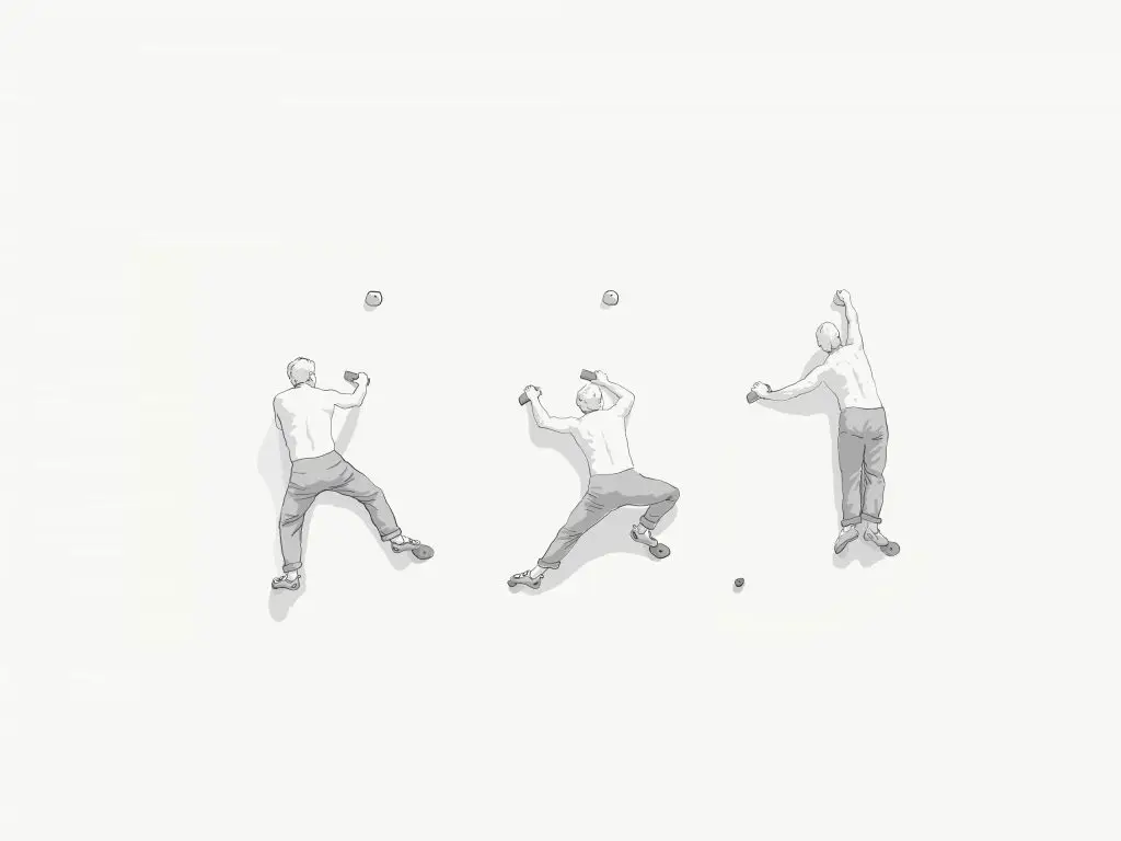 Let’s put it all together. Look at the following pictures. You will see a climber moving from 1) a starting position, 2) into a weight-shifted position (with their hips directly over their higher foot), 3) and finally standing up to reach the next handhold.