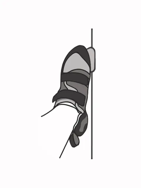 Remember to trust that your climbing shoe will distribute your weight properly, and relatively painlessly. Place your foot on a foothold and use the inside edge.